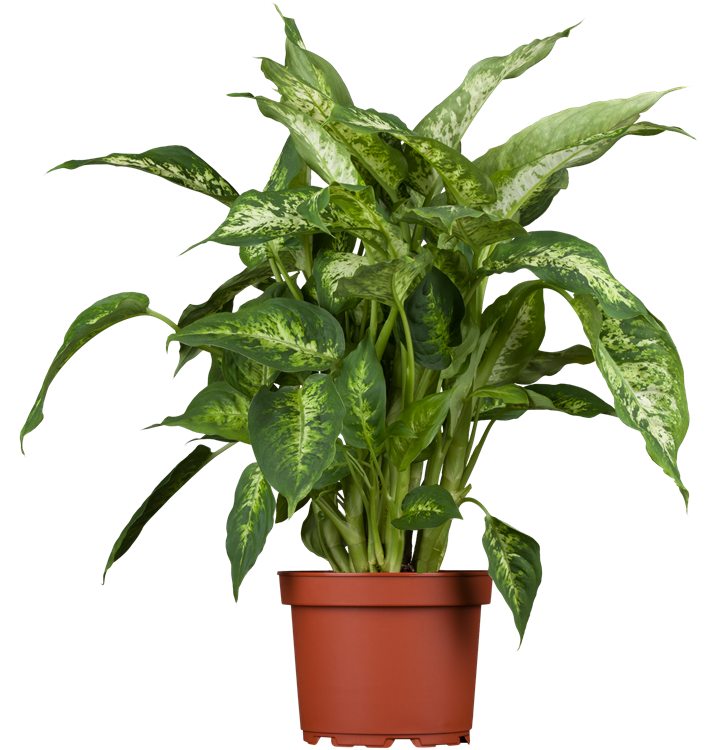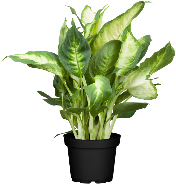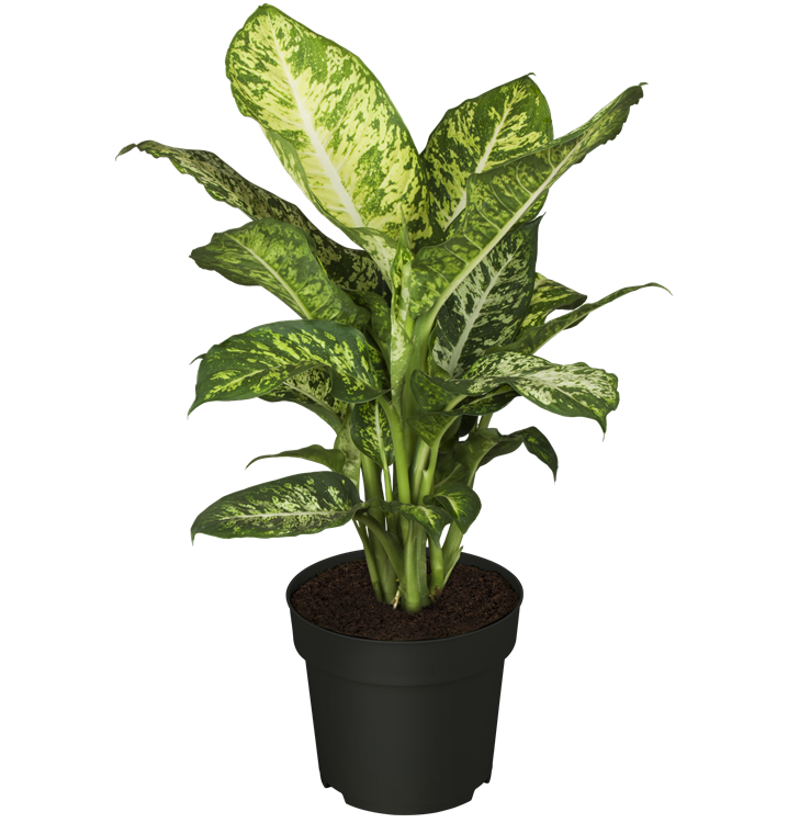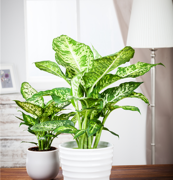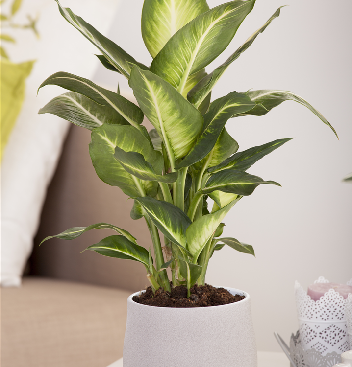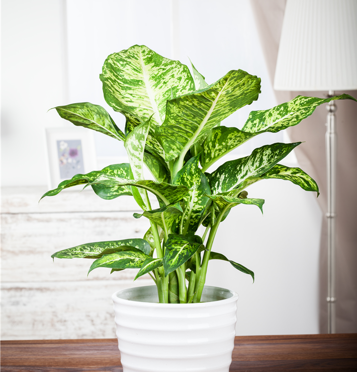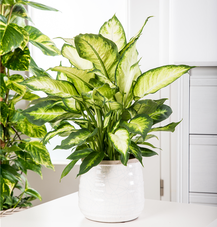 Die immergrünen Blätter der Dieffenbachie sind dunkelgrün, lanzettlich.