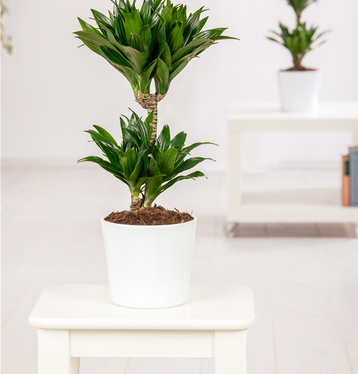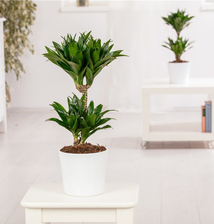 Der Drachenbaum (Dracaena fragrans) zählt zu den pflegeleichten Pflanzen, die sehr dekorative, dunkelgrüne Blätter besitzt. Sie sind lineal. Diese aufrechte Pflanze gedeiht am besten an einem sonnigen bis halbschattigen Standort.