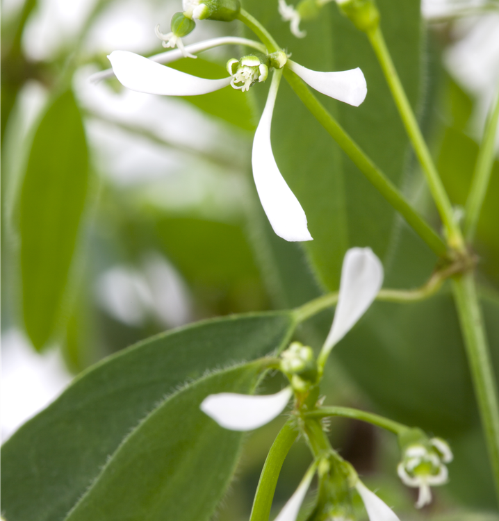 Die Euphorbie (Euphorbia hypericifolia) ist eine beliebte Pflanze für den Balkon, die während der gesamten Saison unzählige weiße Blüten bildet. Ein sonniger bis halbschattiger Standort und ein durchlässiges Substrat werden bevorzugt.