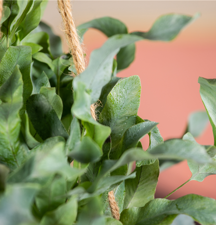 Der Goldene Hasenfußfarn (Phlebodium aureum) ist mit seinen gefingerten, dunkelgrünen Blattwedeln eine dekorative Zimmerpflanze. An einem hellen Standort un in einer humosen, lockeren Erde fühlt er sich am wohlsten. Bei günstigen Bedingungen erreicht dieser Farn eine Höhe von ca. 40 cm und wird bis zu 80 cm breit.