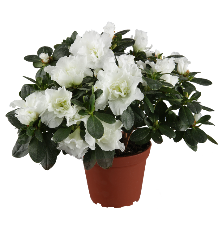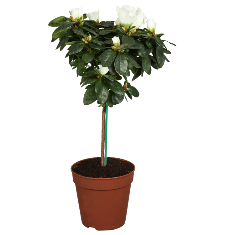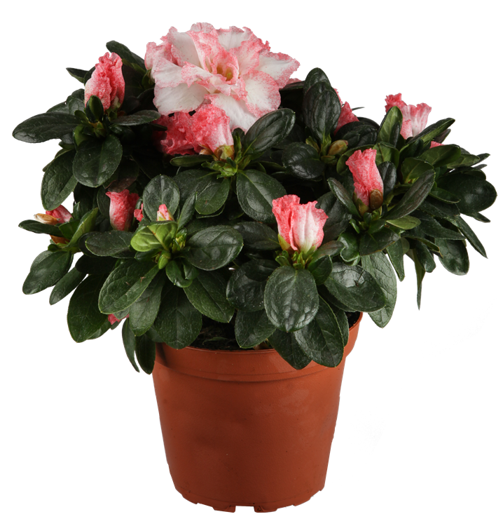 Die Indische Azalee (Rhododendron simsii) ist eine rosa, rot oder weiß blühende Pflanze, die lanzettliche, dunkelgrüne, ganzrandige Blätter trägt. Ihre trichterförmigen Blüten erscheinen von August bis April. Diese aufrechte und kompakte Pflanze gedeiht am besten an einem sonnigen bis halbschattigen Standort.