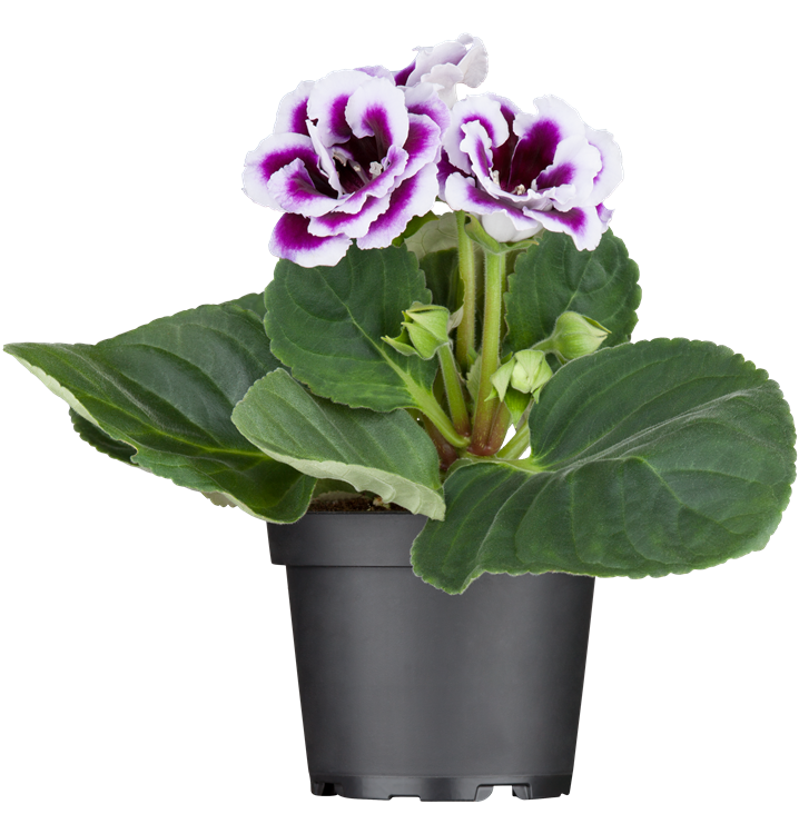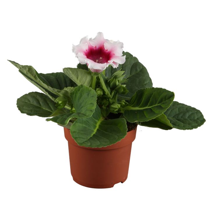 Die Falsche Gloxinie (Sinningia speciosa) ist eine rosa, rot, violett oder zweifarbig blühende Pflanze, die eiförmige, matte, gekerbte Blätter trägt. Ihre glockenförmigen Blüten erscheinen von Juni bis August. Diese buschige und rosettenartige Pflanze gedeiht am besten an einem hellen Standort.