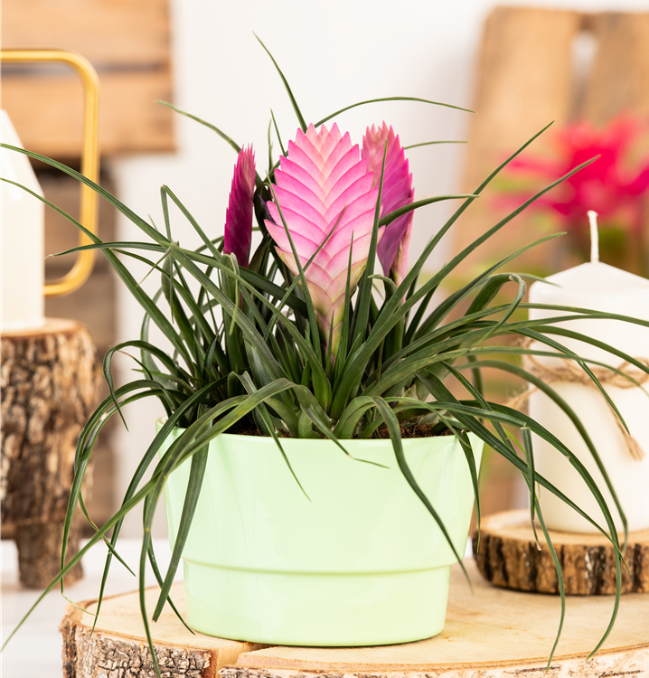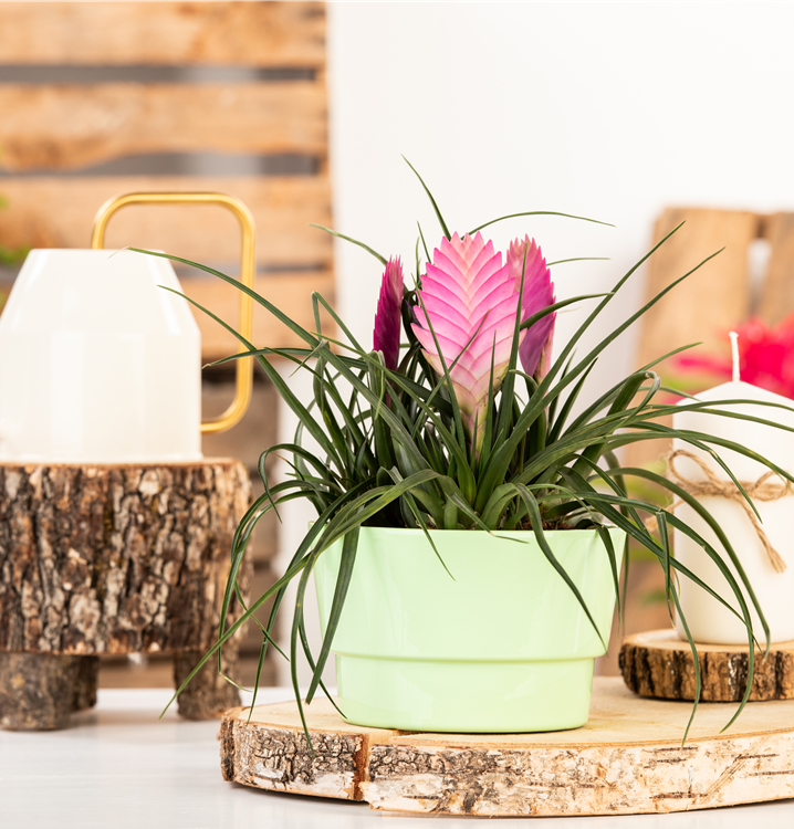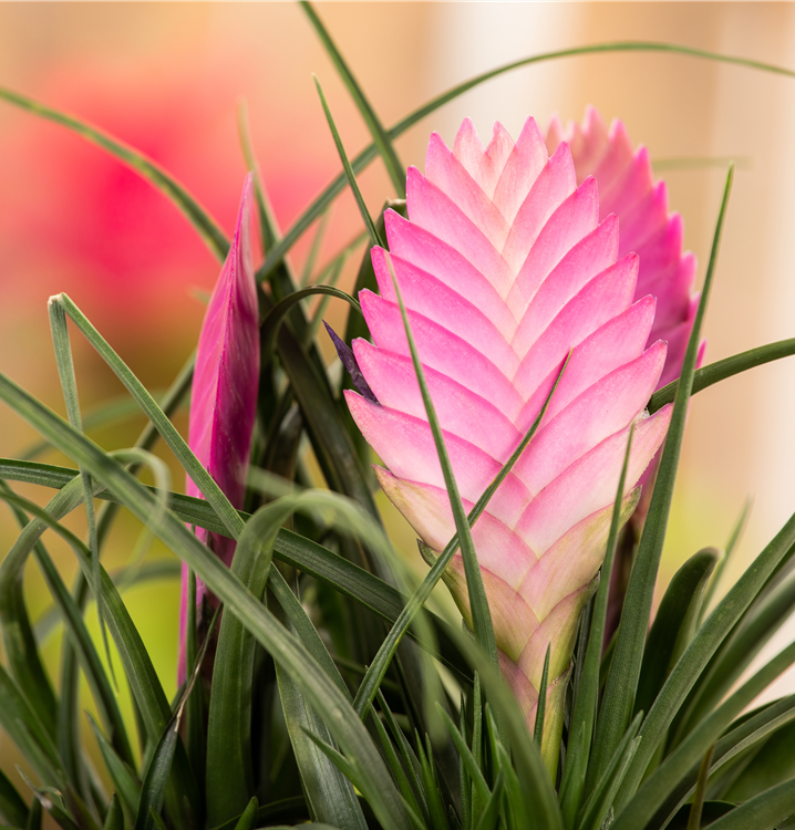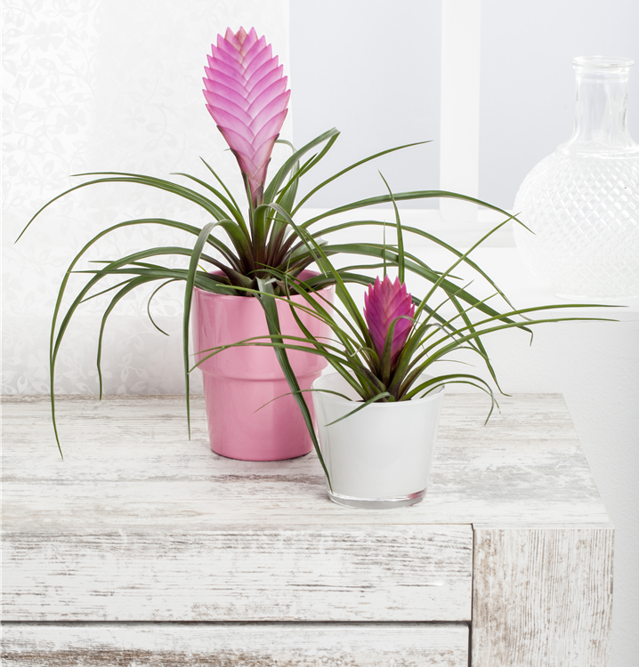 Die Tillandsie (Tillandsia) ist eine weiß, gelb, orange, rot oder rosa blühende Pflanze. Diese Pflanze gedeiht am besten an einem sonnigen bis halbschattigen Standort.