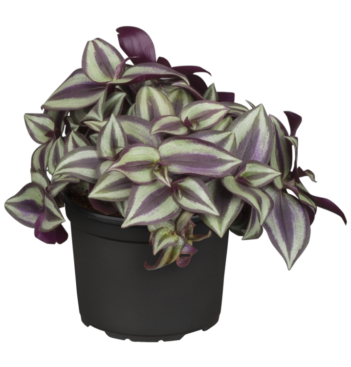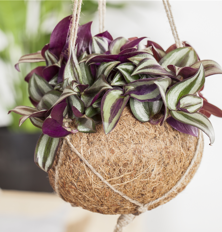 Die Silber-Dreimasterblume (Tradescantia zebrina) ist eine rosa blühende Pflanze, die lanzettliche, grün-weiße Blätter trägt. Diese hängende und kriechende Pflanze gedeiht am besten an einem halbschattigen Standort.