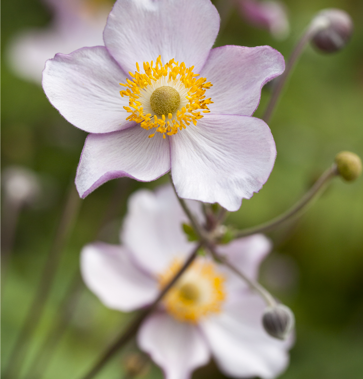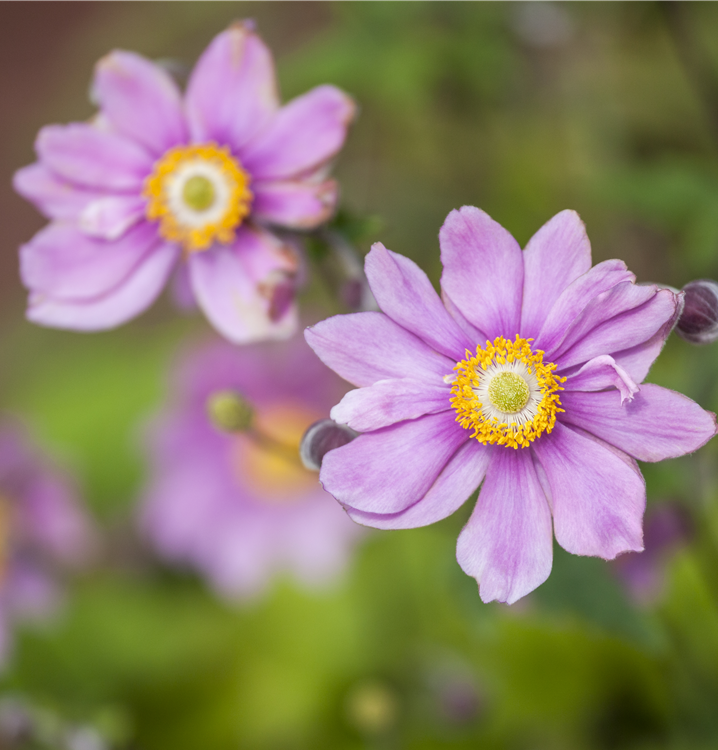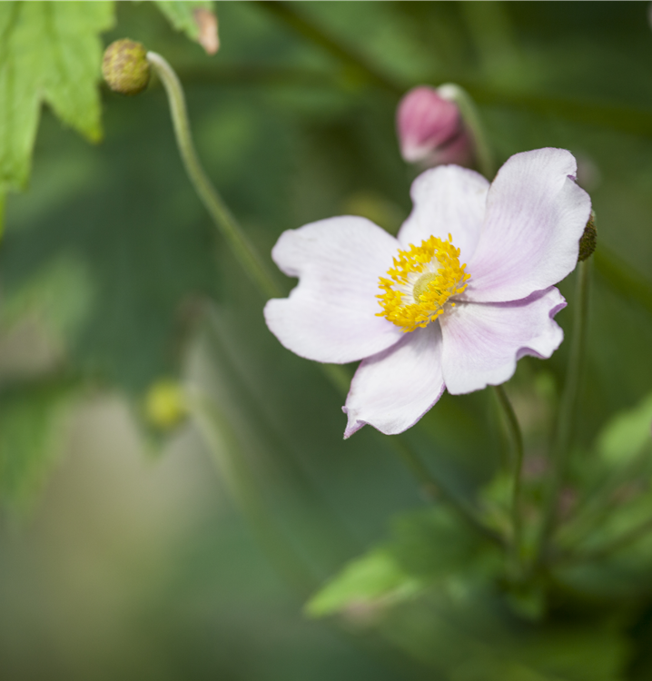 Die Garten-Herbst-Anemone (Anemone japonica) bringt ansehnliche, rosafarbene Blüten von August bis Oktober hervor. Bevorzugt wird ein durchlässiger, humoser Boden in sonniger bis halbschattiger Lage. Die rhizombildende, aufrechte Pflanze erreicht gewöhnlich eine Höhe von 60 - 80 cm und wird bis zu 40 cm breit.