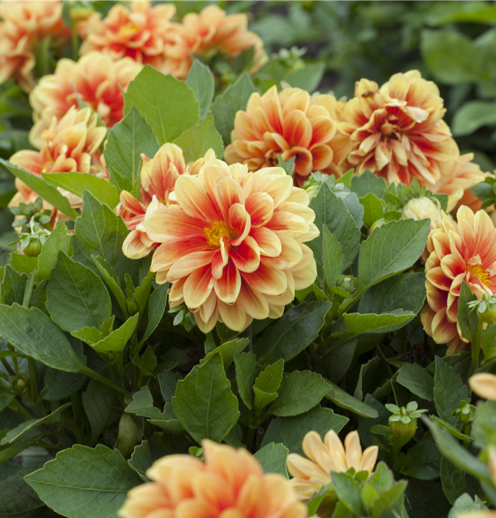 Die Dahlie (Dahlia) bringt ansehnliche Blüten von Juli bis Oktober hervor. Sie bevorzugt humosen, sandigen Boden in sonniger windgeschützter Lage. Die buschige Pflanze erreicht gewöhnlich eine Höhe von 0,3 - 1,5 m und wird bis zu 1 m breit.