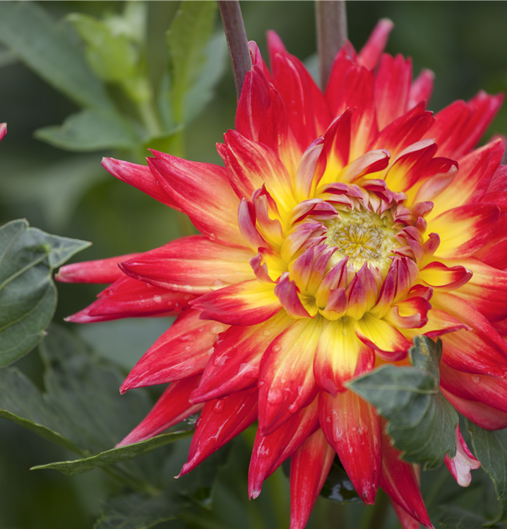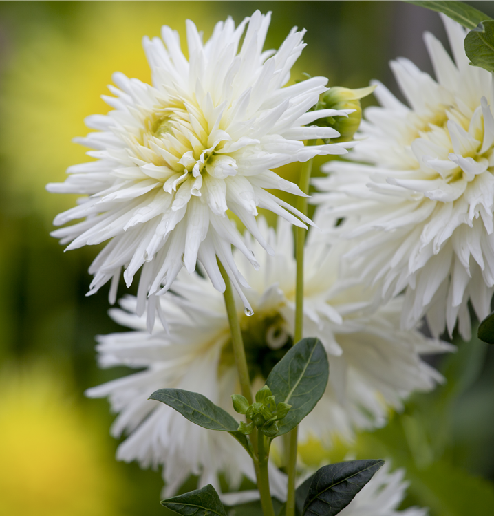 Die sommergrünen Blätter der Kaktus-Dahlie sind mittelgrün, eiförmig, gezähnt.