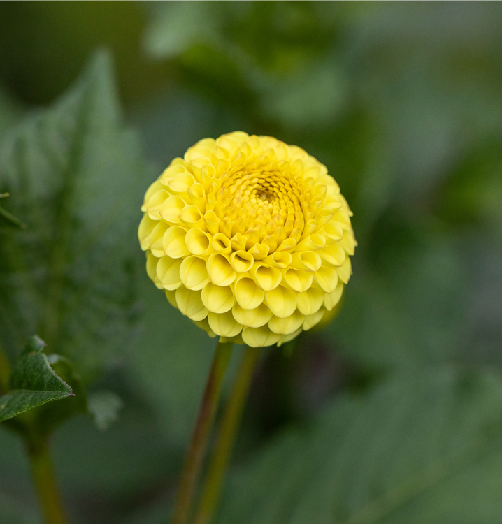 Die Blätter der Pompon-Dahlie sind mittelgrün, eiförmig, gezähnt.