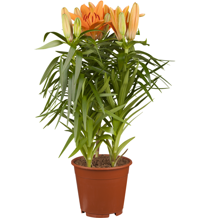 Die Asiatische Lilie (Lilium) bringt ansehnliche, weiße, gelbe, orangefarbene, rote, angenehm duftende Blüten von Juni bis August hervor. Bevorzugt wird ein durchlässiger, humoser Boden in sonniger bis halbschattiger Lage. Die aufrechte Pflanze erreicht gewöhnlich eine Höhe von 20 - 40 cm und wird bis zu 15 cm breit.