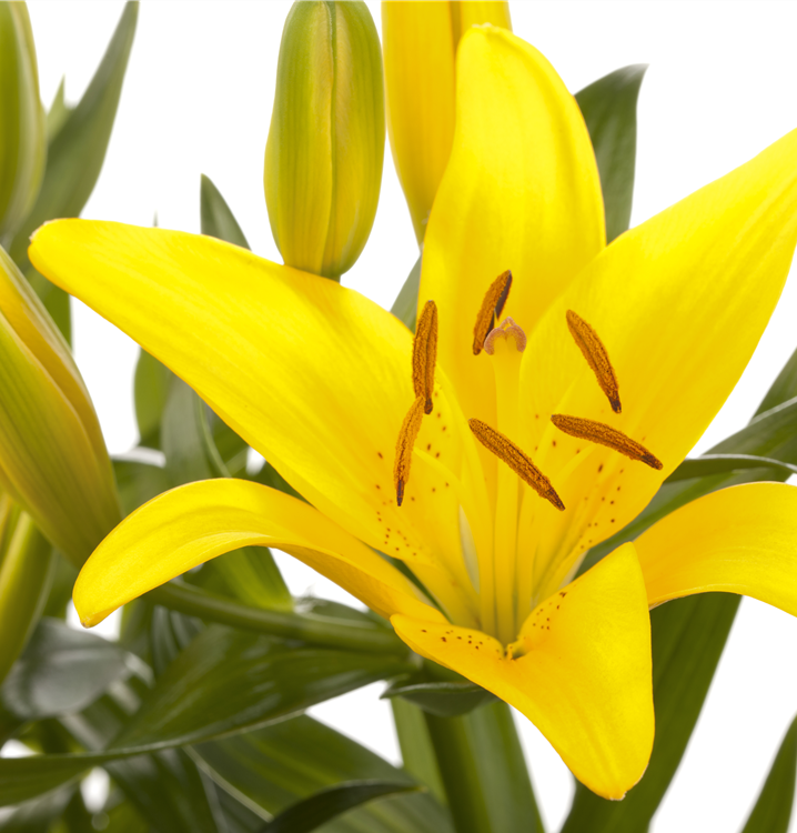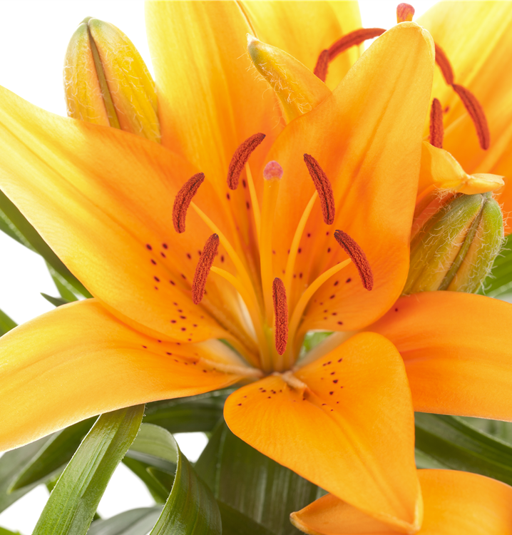 Die sommergrünen Blätter der Asiatische Lilie sind dunkelgrün, lanzettlich.
